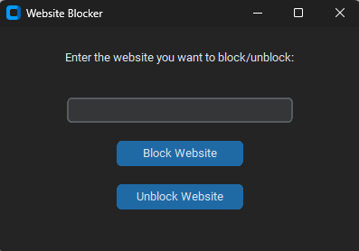 Our Website Blocker and Unblocker is a simple, Python-based tool designed to help you manage online distractions efficiently. With a straightforward interface, you can easily block or unblock websites by entering their URLs and clicking a button. This lightweight application is perfect for boosting productivity, implementing parental controls, and maintaining focus during important tasks. Download now to take control of your online experience effortlessly!